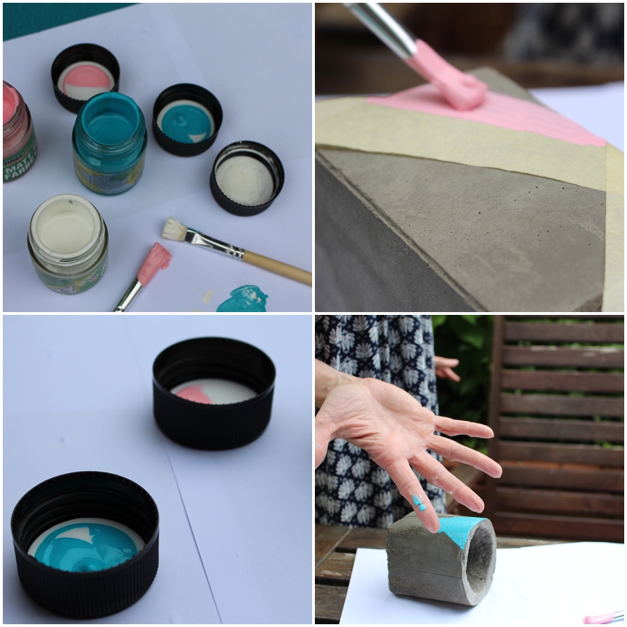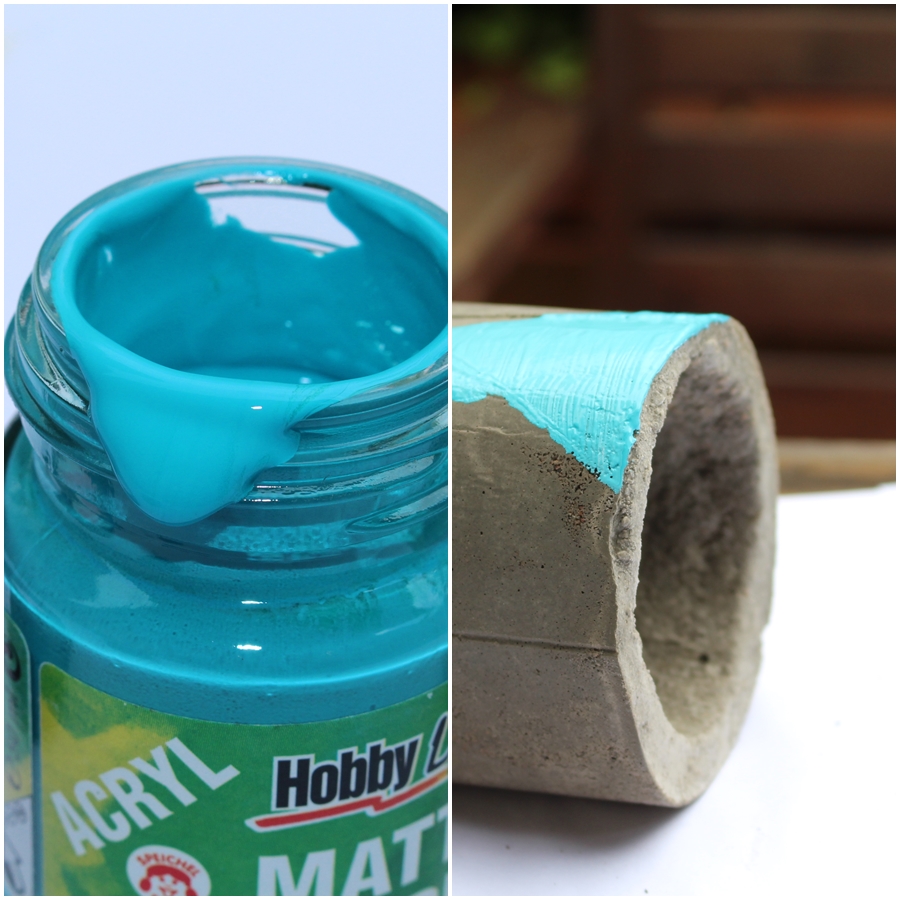 Wenn dann alles sehr gut getrocknet ist, kann man den Beton anmalen.