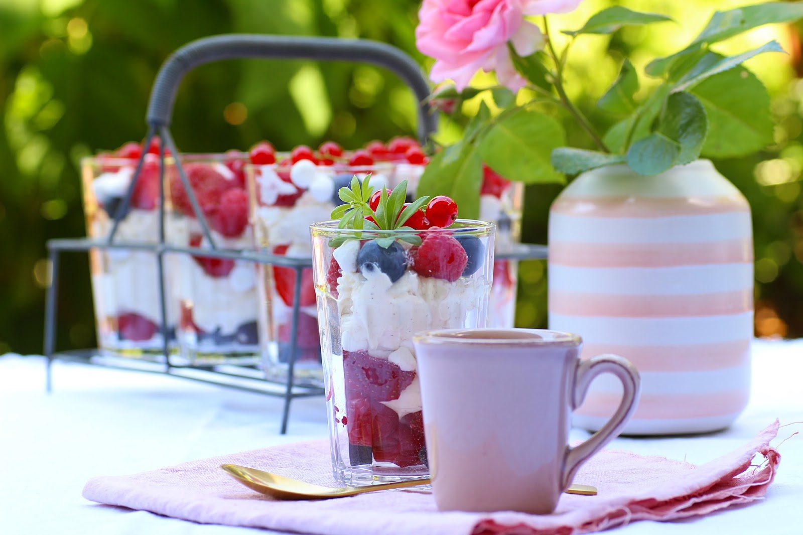Das Eton Mess darf aber nicht nur am 06.Juni serviert werden. Ich könnte es das ganze Jahr über essen. Jetzt, da die Beerensaison im vollen Gange ist, kann man es wunderbar mit einem Beerenmix zubereiten.