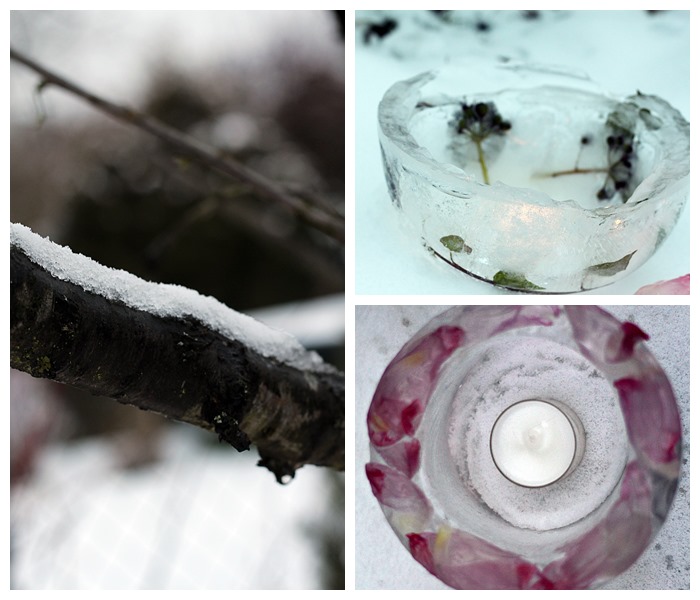 ein gefrorenes Windlicht mit Blütenblättern und Beeren, das wollte ich schon längst einmal ausprobieren.