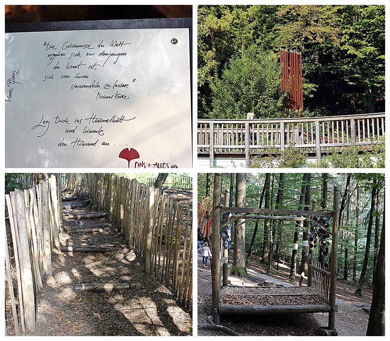 Die Stationen am Wunderweg und im Klangwald haben uns viel Spaß gemacht und auch sehr inspiriert. Immer wieder findet man auf kleinen Schildern Sprüche und Zitate, die auch sehr nachdenklich machen.