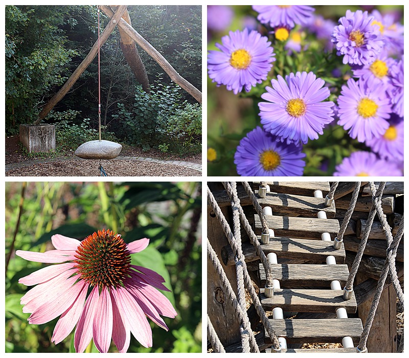 Wir entdeckten verschiedene Sinnesstationen, die sich über einen ca. 2 km langen Rundweg – den Wunderweg erstreckten. Hier dürfen Kinder und Eltern experimentieren, spielen und staunen. Die Verbindung von Kunst und Natur verleiht dem Erfahrungsfeld Eins & Alles einen ganz besonderen Charme.