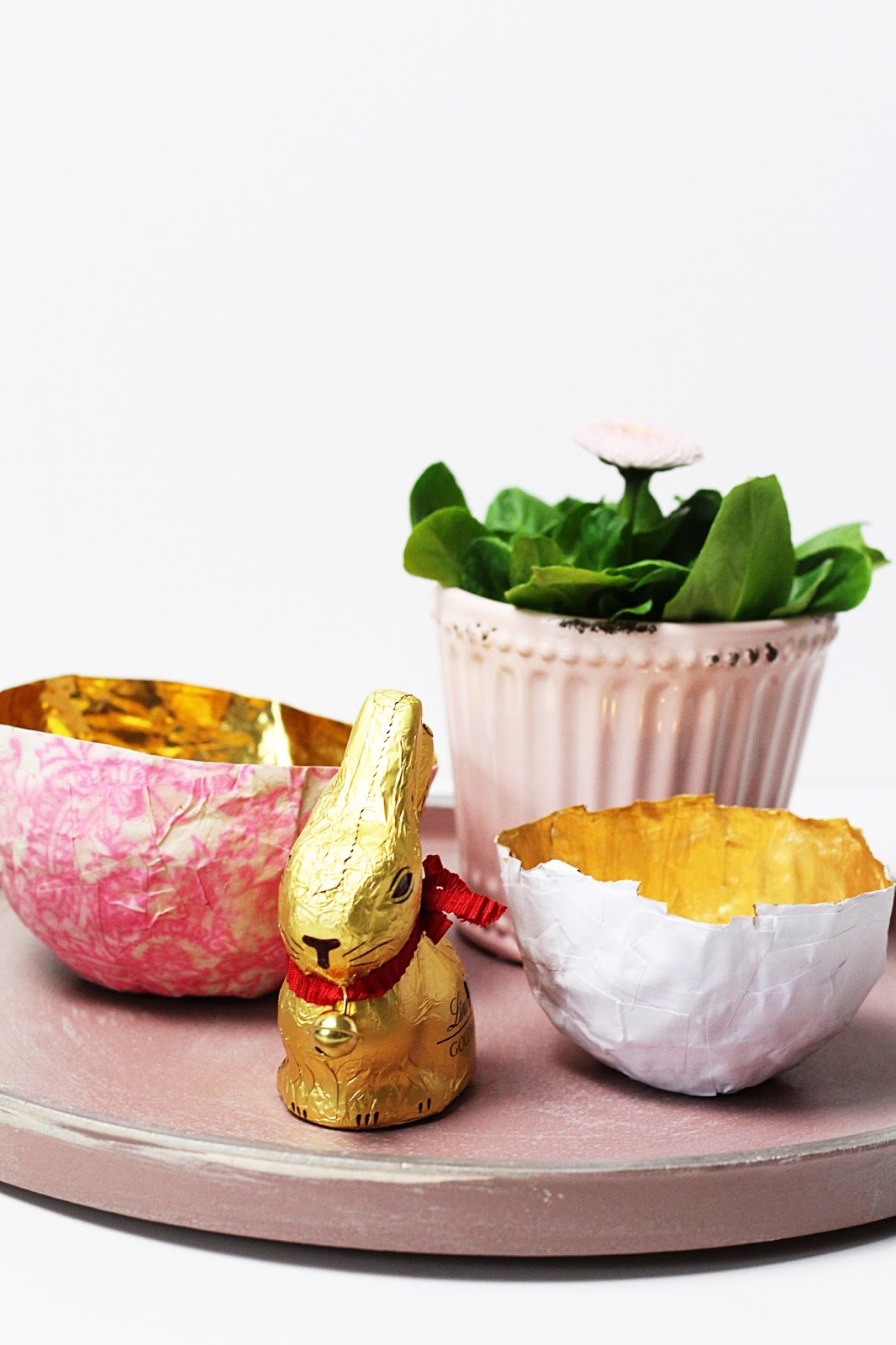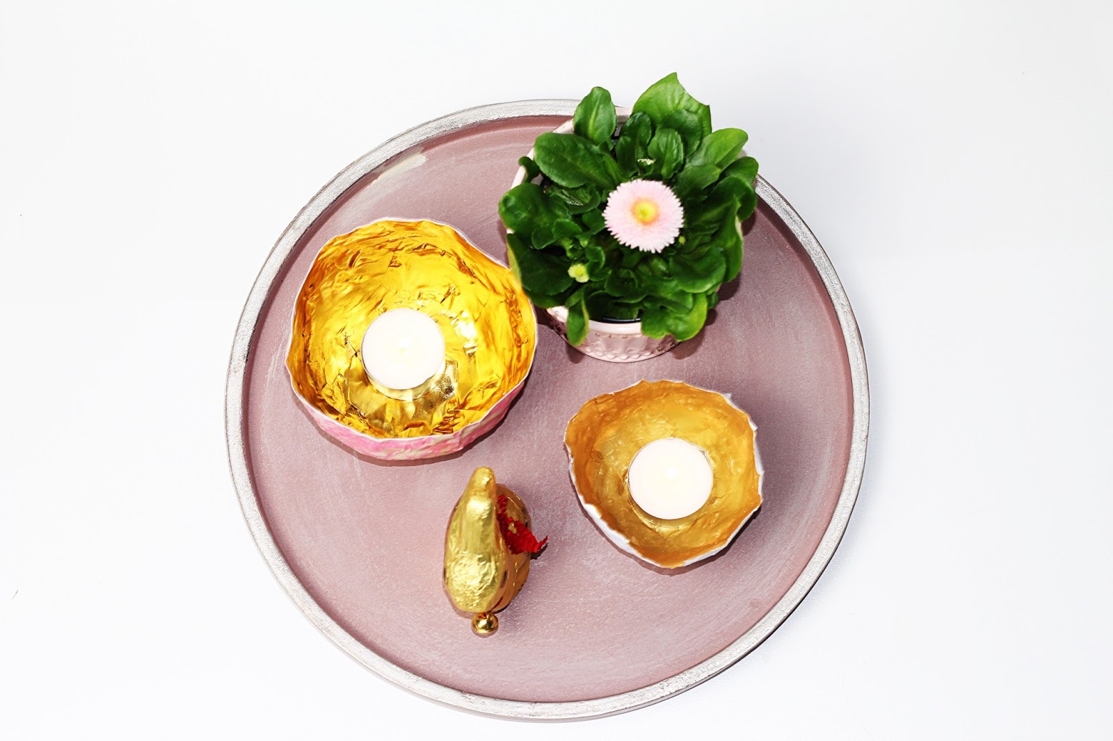 Die vergoldeten Schälchen werde ich Windlicht verwenden. Die Papierschälchen eignen sich aber auch für Süßigkeiten oder als Osternestchen super gut.