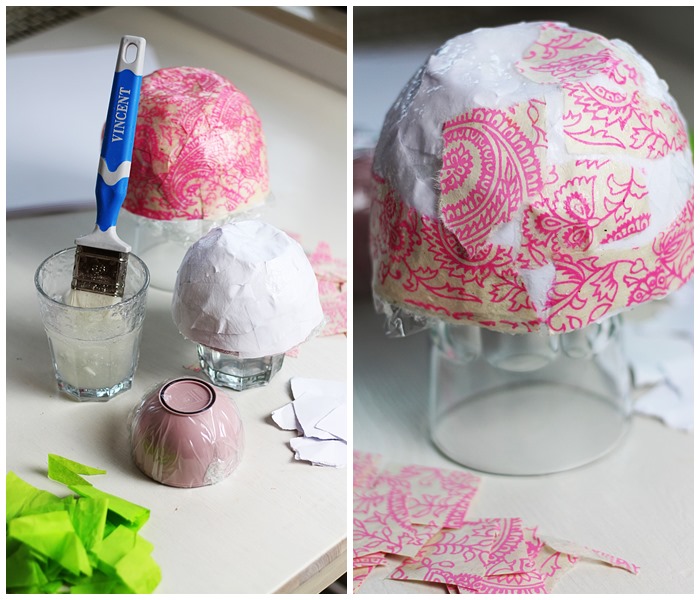 So arbeitet ihr euch weiter voran, bis die ganze Schüssel mit Papier „beklebt“ ist. Um am Ende ein stabiles Ergebnis zu bekommen müsst ihr wirklich mehrere