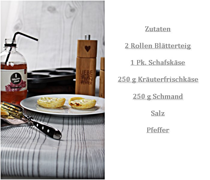 Aus dem  Blätterteig mit einem Glas Kreise ausstechen und diese in ein Muffinblech legen. Den Rand etwas hochdrücken.