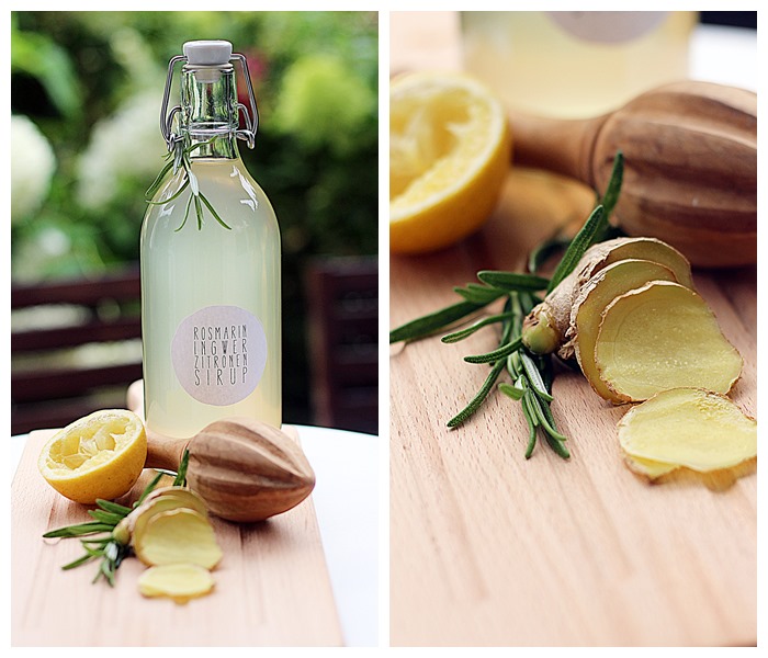 Heute habe ich Euch ein Rezept für einen Ingwer-Zitronen-Rosmarin Sirup mitgebracht.