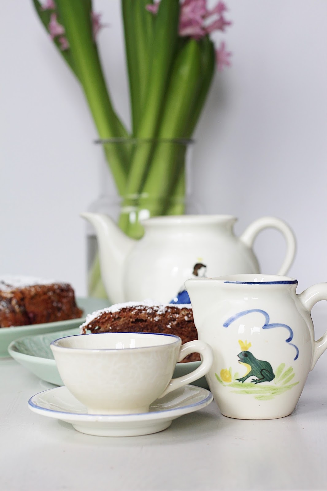 Da dieser Post heute wieder bei Ina verlinkt wird und es um das Thema Köstliche Kindheitserinnerungen geht, habe ich zum Servieren mein altes Puppenservice hervorgekramt.