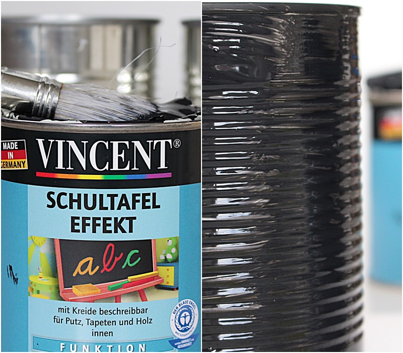 Die Idee mit der Tafelfarbe ist sehr schön – schlicht und einfach… Meine Dosen haben eine Serviette als Überzug bekommen 😉