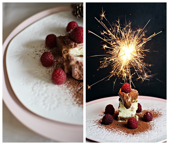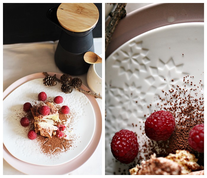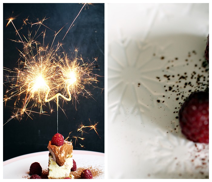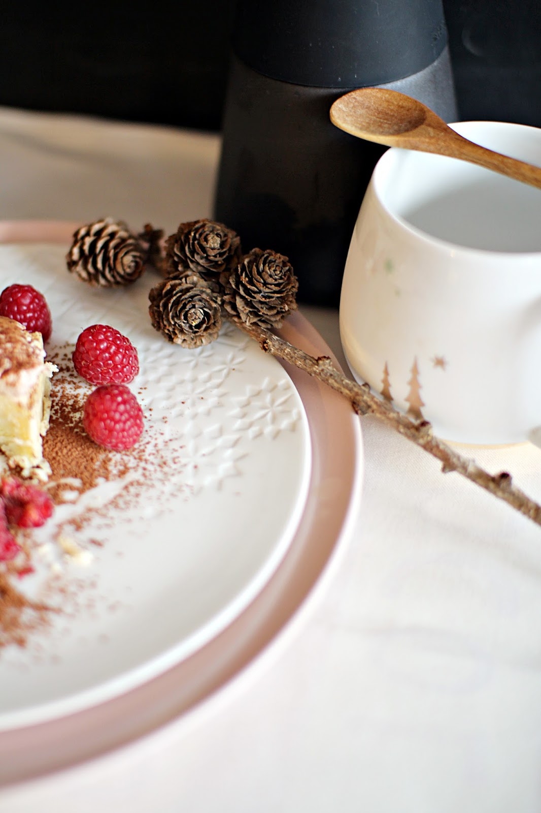 Vor dem Sevieren mit Zimtschmand und Himbeeren verzieren. In kleine Stückchen geschnitten eignet sich der Cheescake auch super als Dessert nach dem Weihnachtsessen.