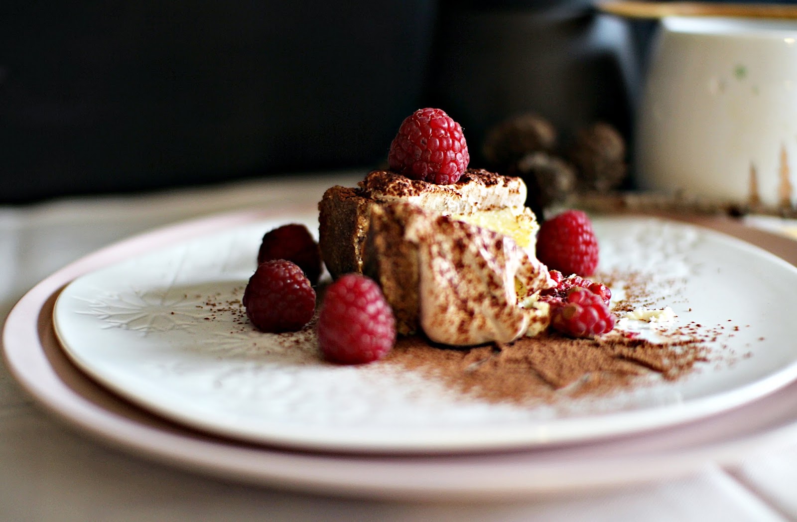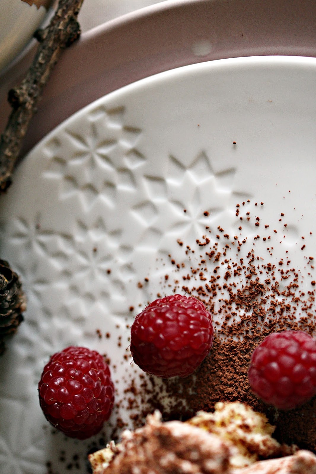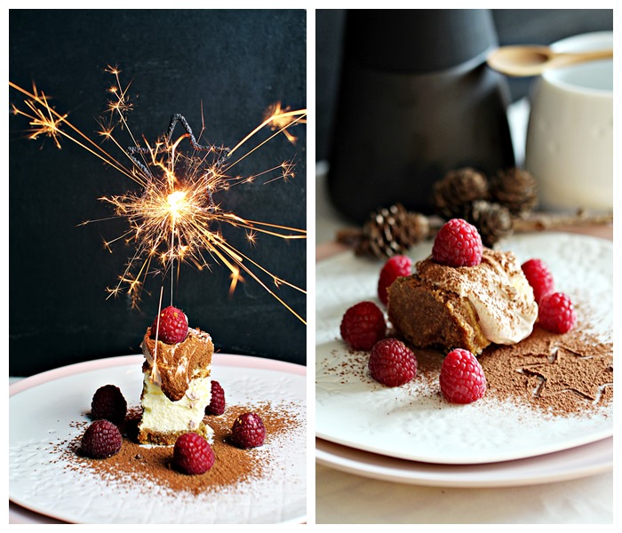 Lebkuchen Cheescake mit Zimtschmand und Himbeeren