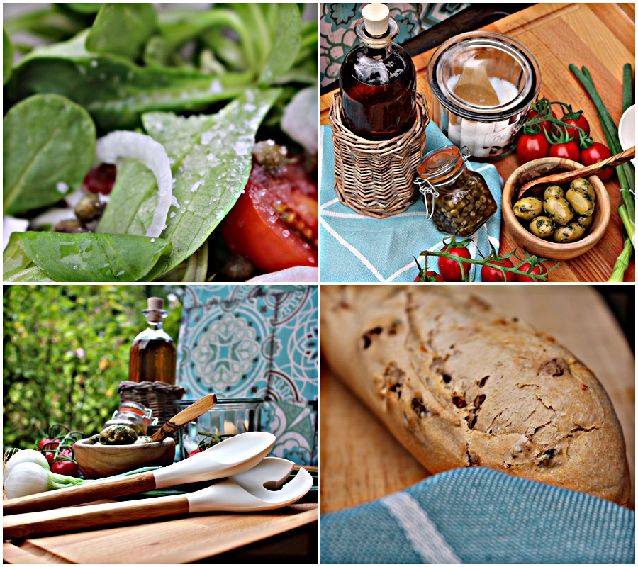 Die Flasche im Korb, ich nehme mal an, da ist der Essig drin, sieht ja super aus! Ach, du hast aber auch immer so schönes Küchenzubehör!
