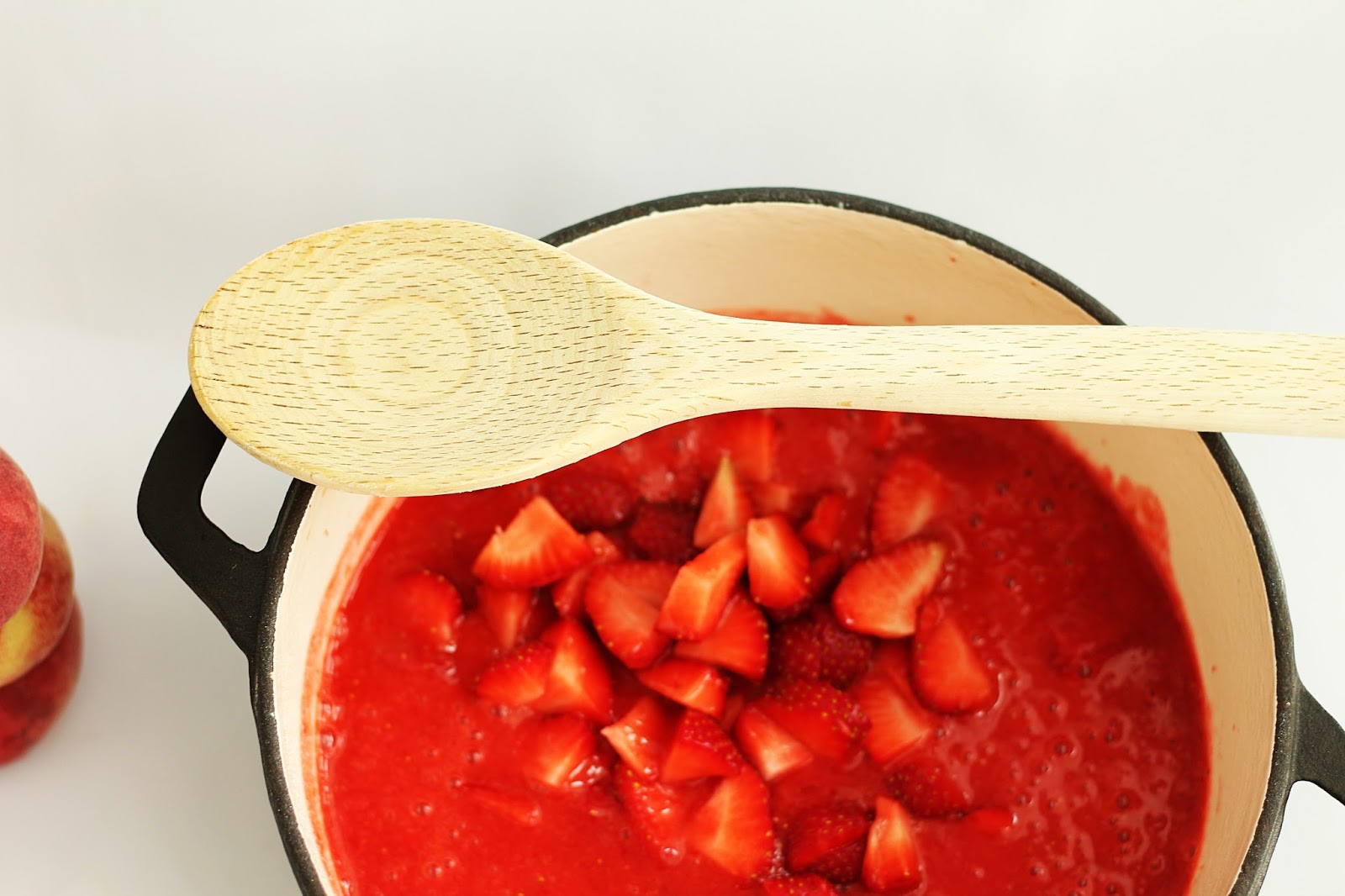 Für euch habe ich die Erdbeer-Pfirsich Konfitüre ausprobiert: