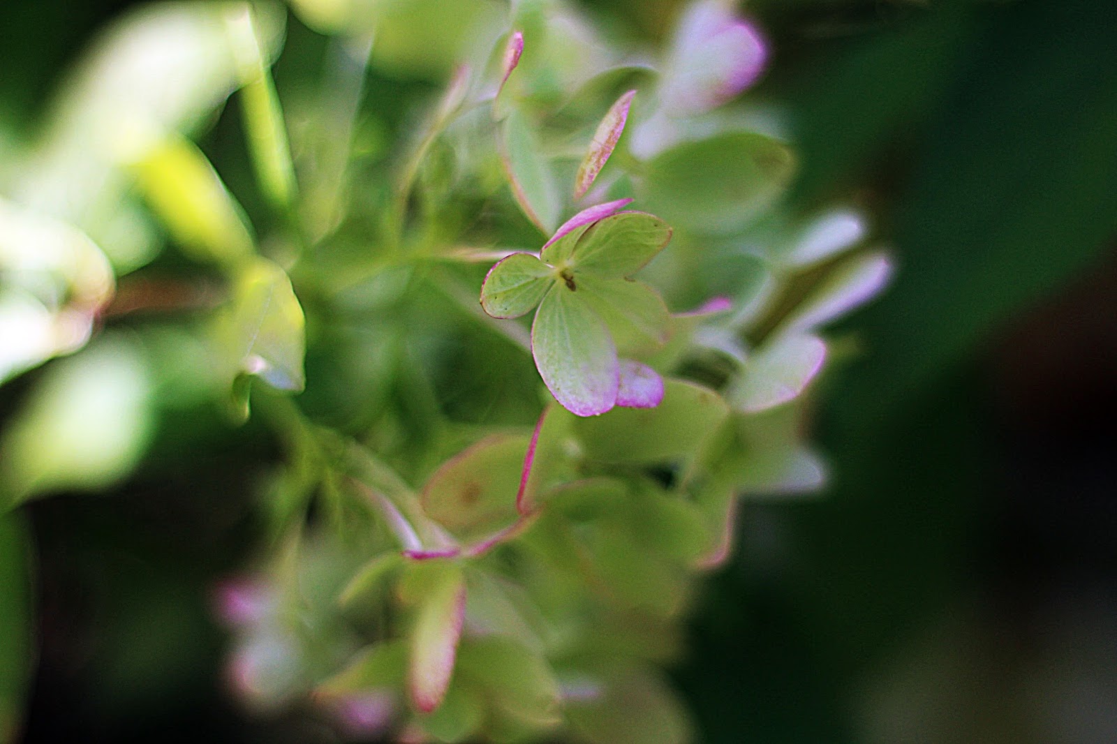 Die Blüten die den ganzen Sommer cremeweiß blühten entwickeln jetzt eine rosa Farbe, die sich bis zu einem dunklen purpurrot ausprägen kann – ich bin schon neugierig wie purpurfarben sie noch werden wird.