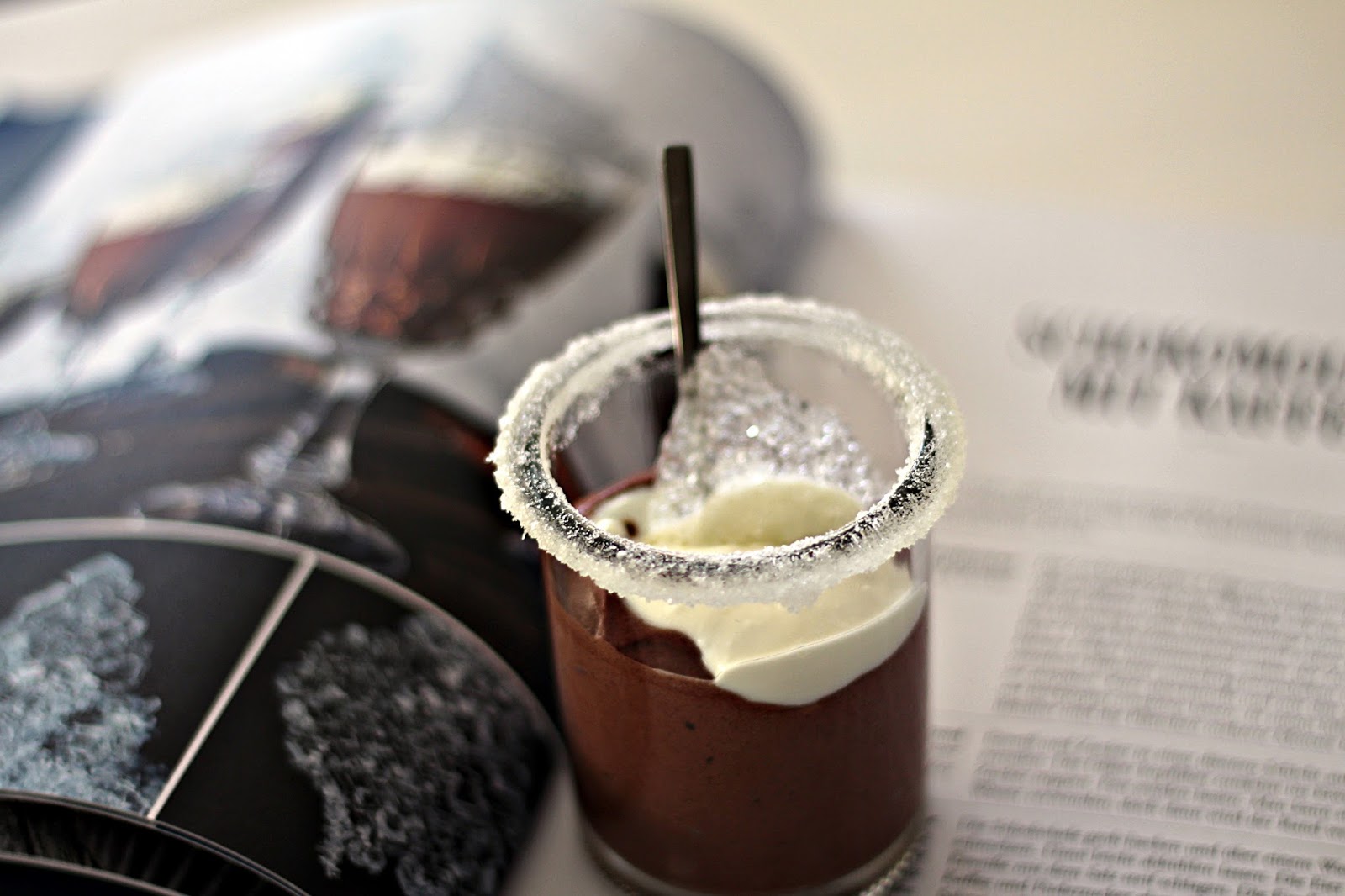 Zu so einem hyggeligen Schmökernachmittag gehört unbedingt etwas süßes. Das Buch ist wirklich prall gefüllt mit tollem Gebäck in ausergewöhnlicher Aufmachung. Wir haben uns für ein Sokodessert entschieden das mit raureifähnlichen Zuckerstücken verziert ist. Das passt doch gut in den Januar.